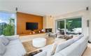 The living area features a generous lounge with large windows, enhancing natural light and views, creating a seamless connection between indoor and outdoor spaces. The modern open-plan kitchen completes the area with both elegance and practicality.